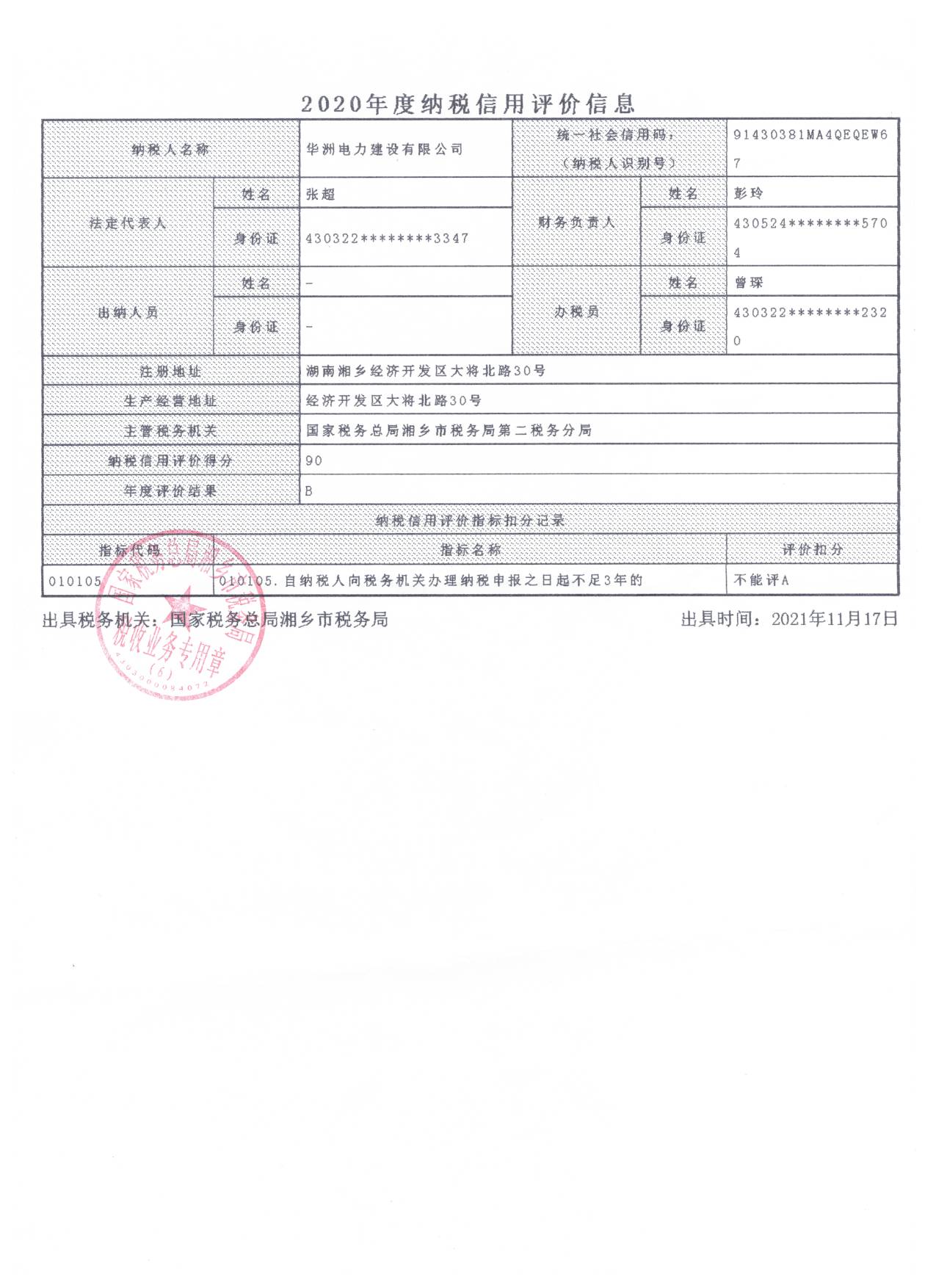 企業(yè)納稅信用等級報告: