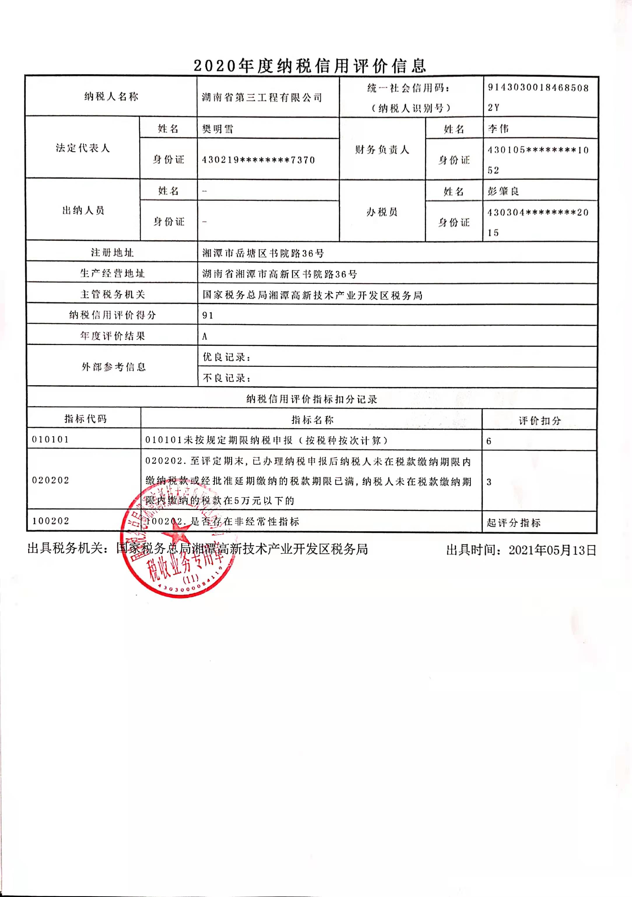 企業(yè)納稅信用等級(jí)報(bào)告: