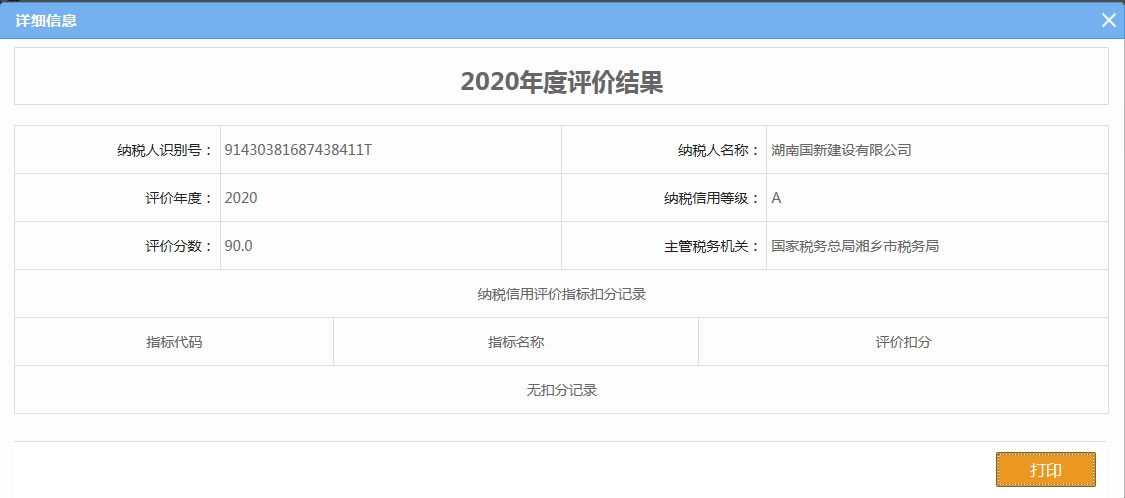 企業(yè)納稅信用等級報(bào)告: