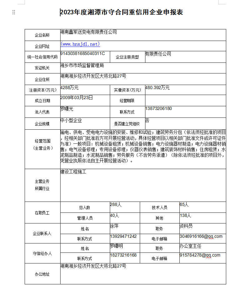 本企業(yè)根據(jù)《湘潭市守合同重信用企業(yè)申報規(guī)定》等編制 2023 年度企業(yè)信用報告書,并保證本報告書內(nèi)容真實(shí)、準(zhǔn)確、完整。