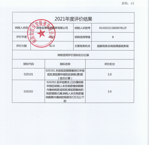 企業(yè)納稅信用等級報(bào)告: